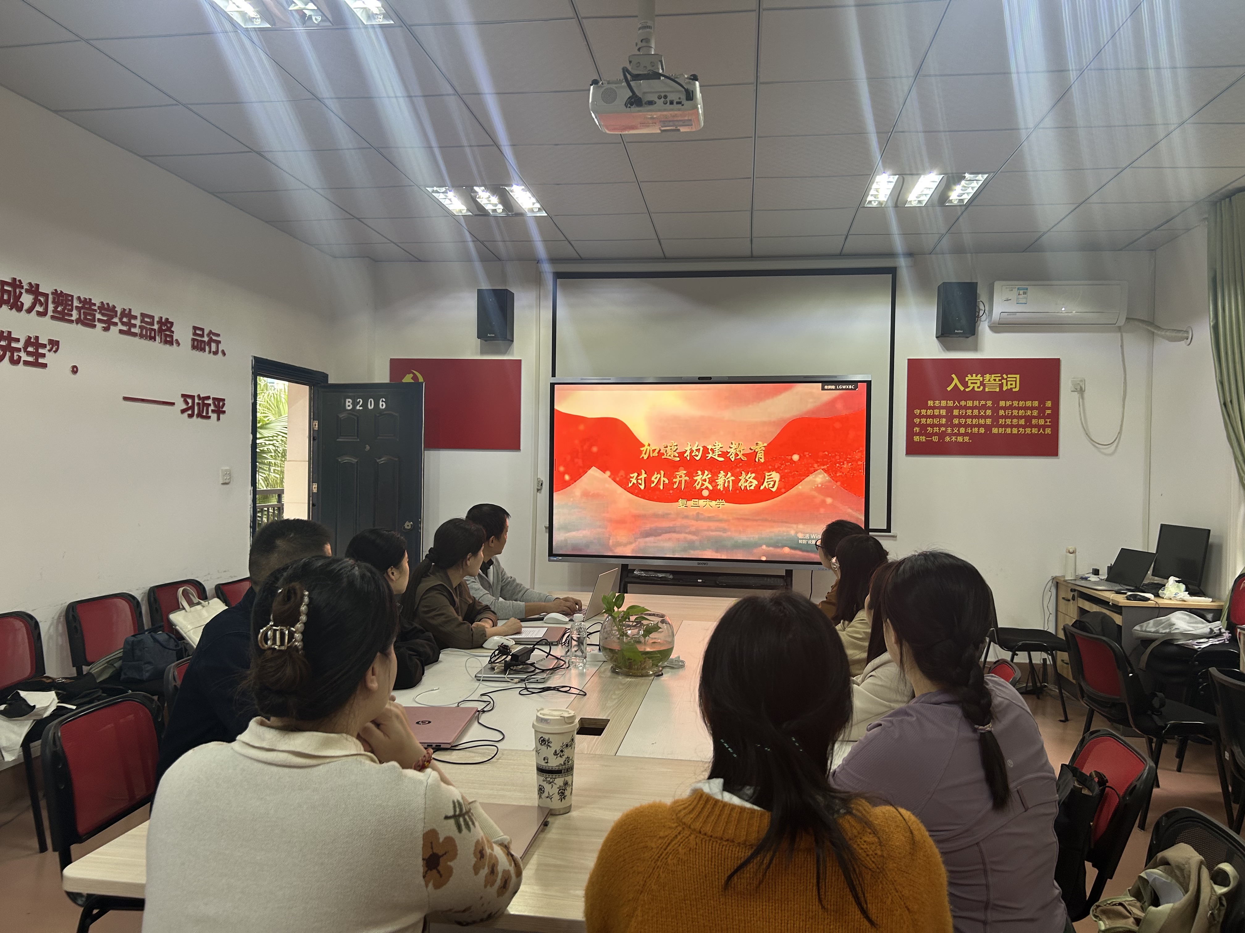 在集中观看现场,教师党员们全程保持专注,用手中的笔记本记录下微党课中的核心观点与典型案例;当讲到“高校如何通过国际合作提升人才培养质量”时,部分教师还拿出手机拍摄关键内容,以便后续教学参考。微党课结束后,党支部随即开展简短研讨,教师党员们结合自身教学实际踊跃发言。“作为外语类院校的马克思主义理论教师,我们可以在‘思政课+外语’融合教学中,融入教育对外开放的案例,帮助学生树立全球视野。”一位教师党员的发言引发共鸣,大家一致认为,此次微党课为今后的教学、科研工作提供了新方向,将把学习所得转化为推动教学创新、服务学校国际化发展的实际行动,为教育强国建设贡献基层党员的力量。