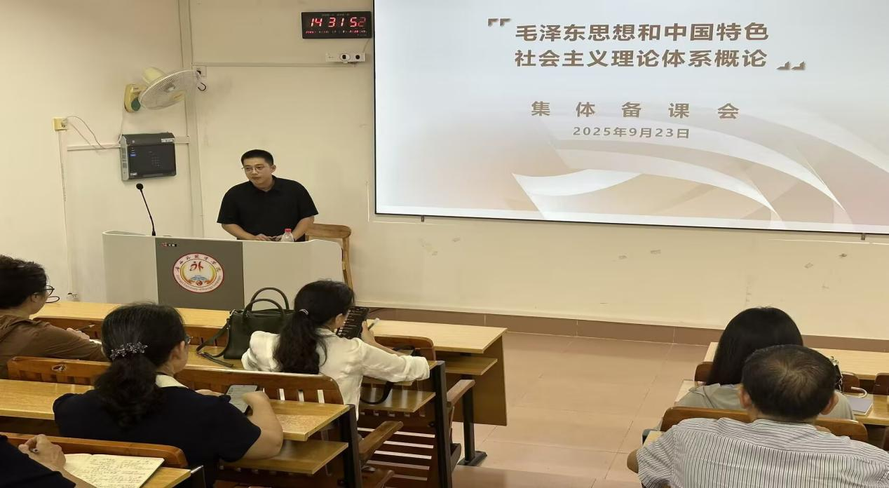 2025年9月23日14:30,毛泽东思想和中国特色社会主义理论体系概论教研室第四次备课会在知新楼A206召开。本次会议由教研室主任卢志涛老师主持,以“剖析体系逻辑,贯通理论演进”为主题,围绕教材第五、第六章内容展开领学,并针对其中的重难点进行了深入的探讨交流。