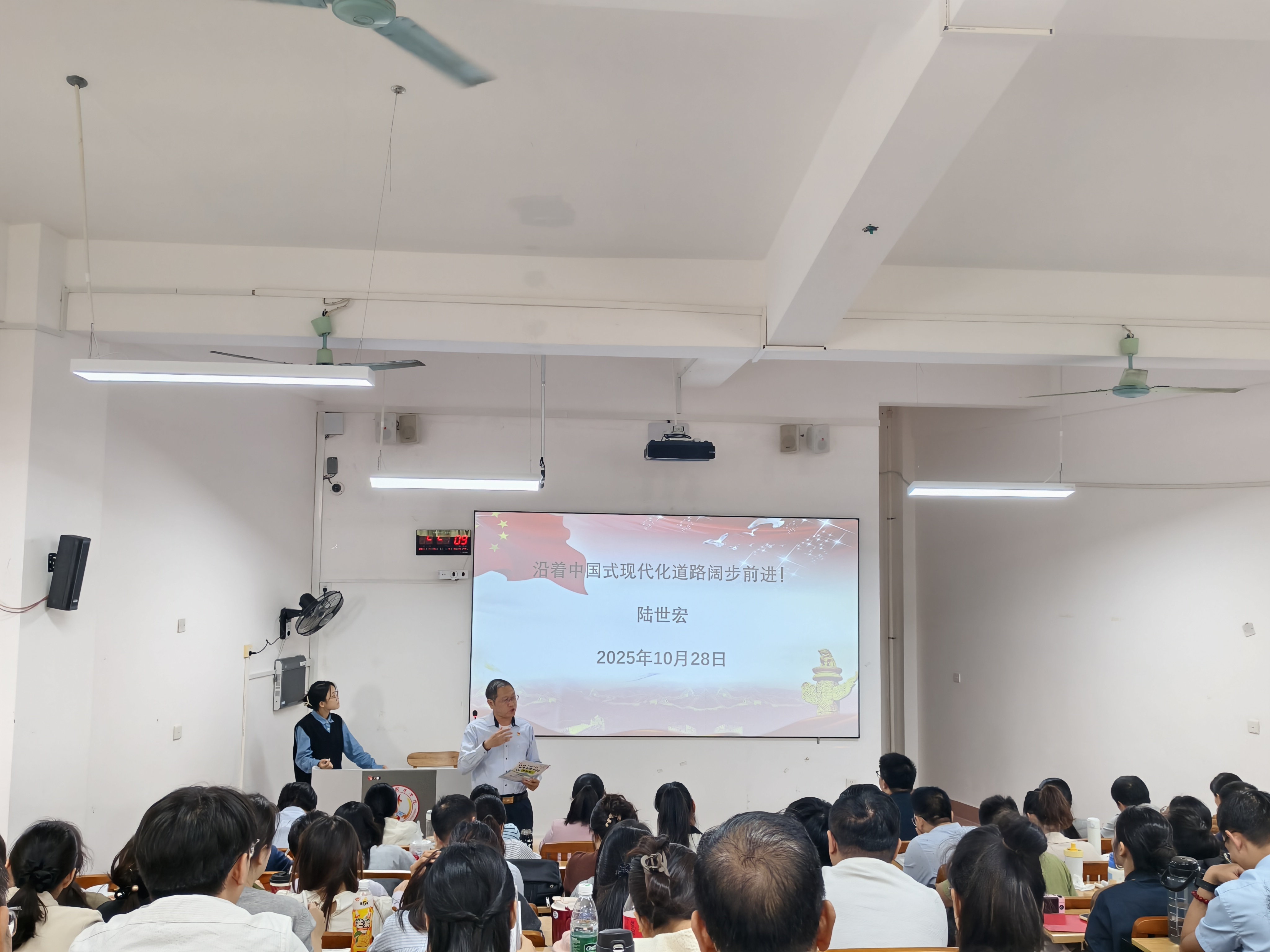 会上,陆世宏院长系统领学了《中共中央关于制定国民经济和社会发展第十五个五年规划的建议》主要内容,并以“深入学习贯彻党的二十届四中全会精神,推进马克思主义教育教学工作上新台阶”为题,对全会精神进行了全面深入的解读。陆世宏院长指出,党的二十届四中全会是在我国迈上全面建设社会主义现代化国家新征程、向第二个百年奋斗目标进军的关键时刻召开的一次十分重要的大会,对于进一步统一思想、凝聚力量,团结带领全国各族人民以中国式现代化全面推进强国建设、民族复兴伟业具有重大而深远的意义。