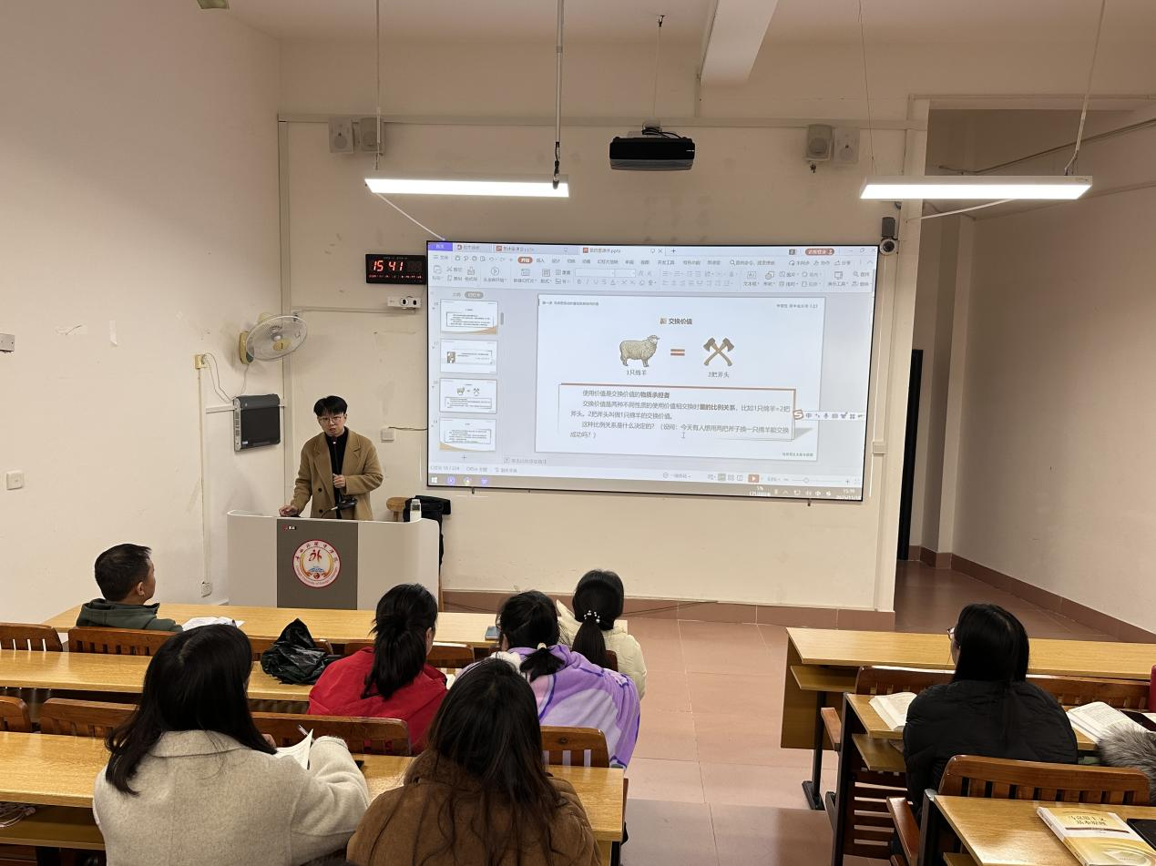 领学现场,领学教师刘勇老师围绕第四章的核心逻辑体系展开深入讲解,针对“价值规律及其作用”“私有制基础上商品经济的基本矛盾”“资本主义基本矛盾与经济危机”等教学关键点结合现实案例、引导提问、设计情景模拟游戏等课堂互动形式,让抽象理论更容易被学生理解。