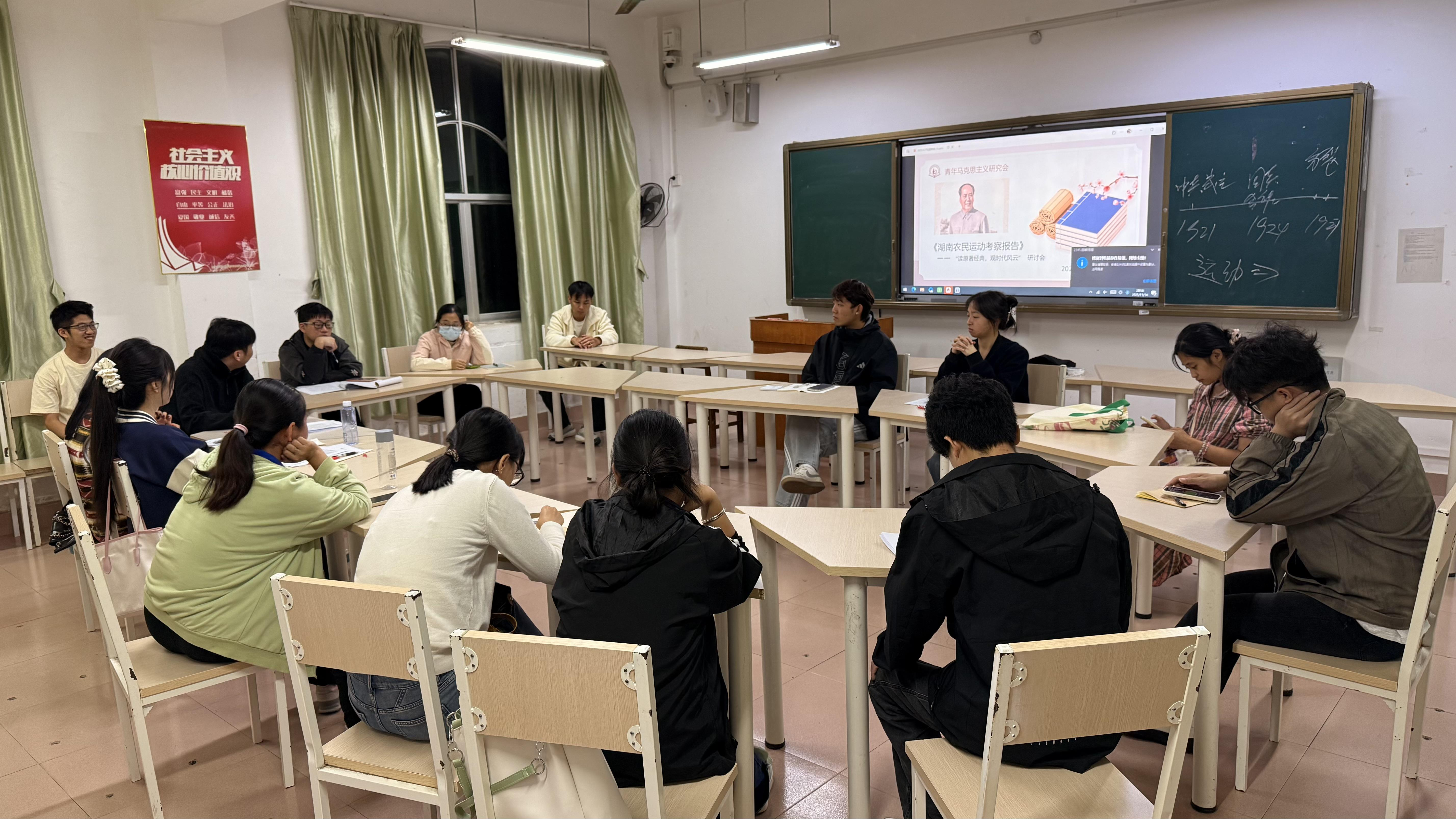 为传承红色基因、感悟思想伟力,深化对中国革命历史与农民运动重要性的认识,11月14日晚,一场主题鲜明、内涵深刻的《湖南农民运动考察报告》专题研讨会在五合校区明德楼221教室成功举办。马克思主义学院潘健老师与青马研究会同学们齐聚一堂,以原文研读、交流分享、主旨研讨的形式,共同探寻经典文献中的真理光芒与实践智慧。