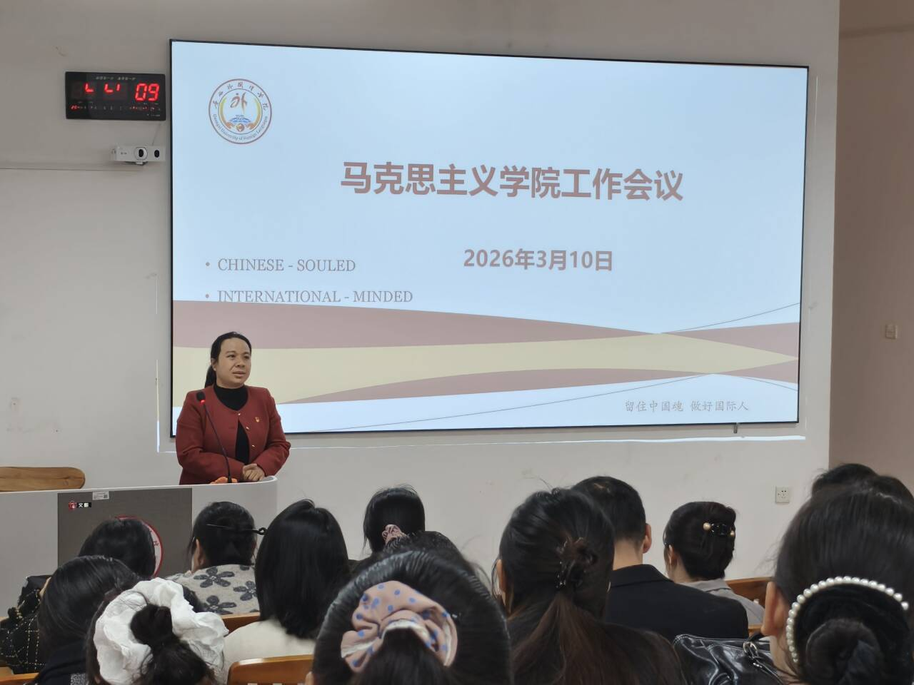 会议最后,工会主席张秀挺老师就 “三八” 国际妇女节相关活动向全院女教职工致以节日问候与美好祝愿,鼓励大家立足岗位、绽放风采,为学校、学院发展贡献巾帼力量。