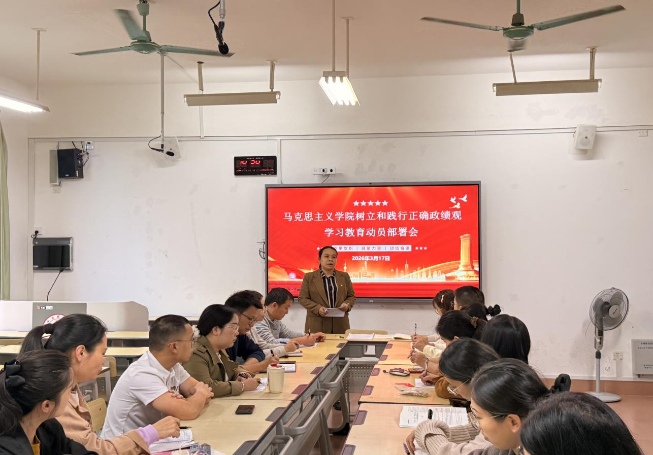 为深入学习贯彻习近平总书记关于树立和践行正确政绩观的重要论述,切实把思想和行动统一到上级决策部署上来,2026年3月17日14:30,马克思主义学院召开支部委员会(扩大会议),专题部署树立和践行正确政绩观学习教育工作。学院全体支委成员、各教研室负责人参加会议。