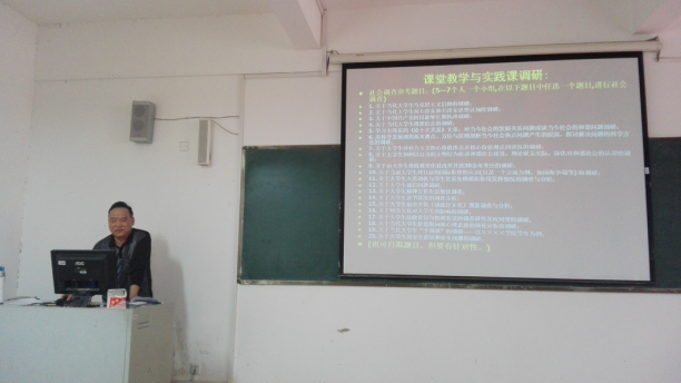 为提高我校思想政治理论课的课堂教学感染力和教学效果,着力提升思政课教师的教育教学水平,总结交流我校思政理论课教学改革的经验。4月11日下午,思政部在大成楼C208教室,举办了“思想政治理论课如何开展课堂实践教学”为主题的教学研讨会。此次研讨会由思政部主任武刚教授主持,邀请思政课外聘教师韦杨副教授主讲,思政部全体教师参加了本次研讨会。