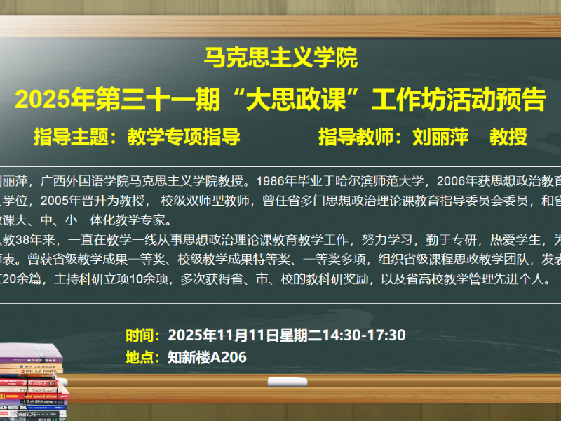 广西外国语学院马克思主义学院2025年第三期“人人过关”磨课教研活动预告